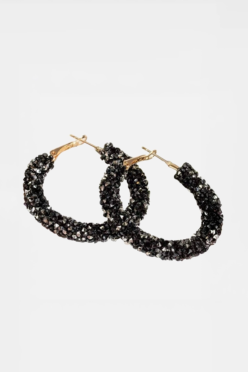 •Κρίκοι με μαύρους λαμπερούς κρυστάλλους